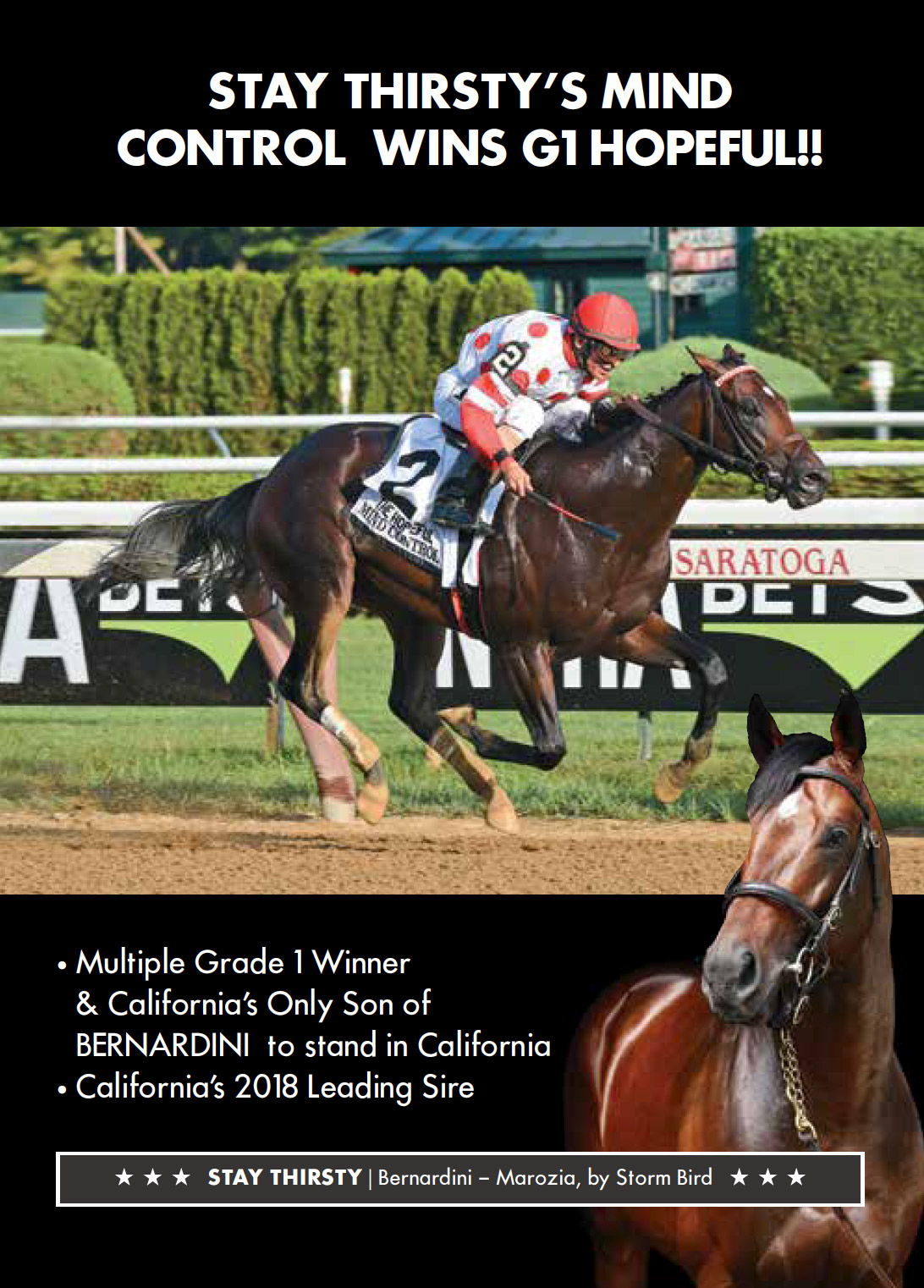 - Multiple Grade 1 Winner & California’s Only Son of BERNARDINI to stand in California